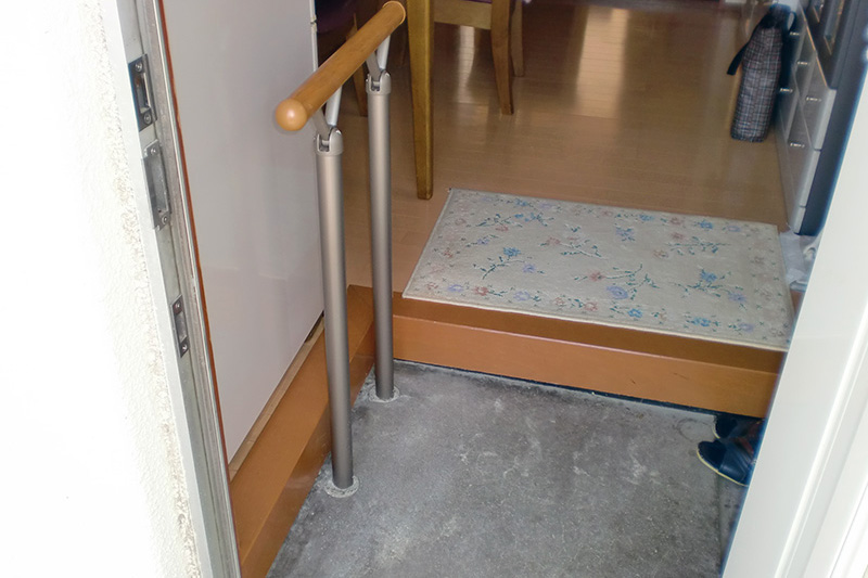 歩行に不安のある場合、手すりが必要です。使用される方の身長や、ご希望の高さに合わせて取り付けを行います。